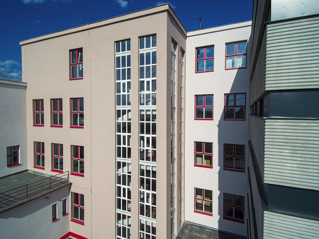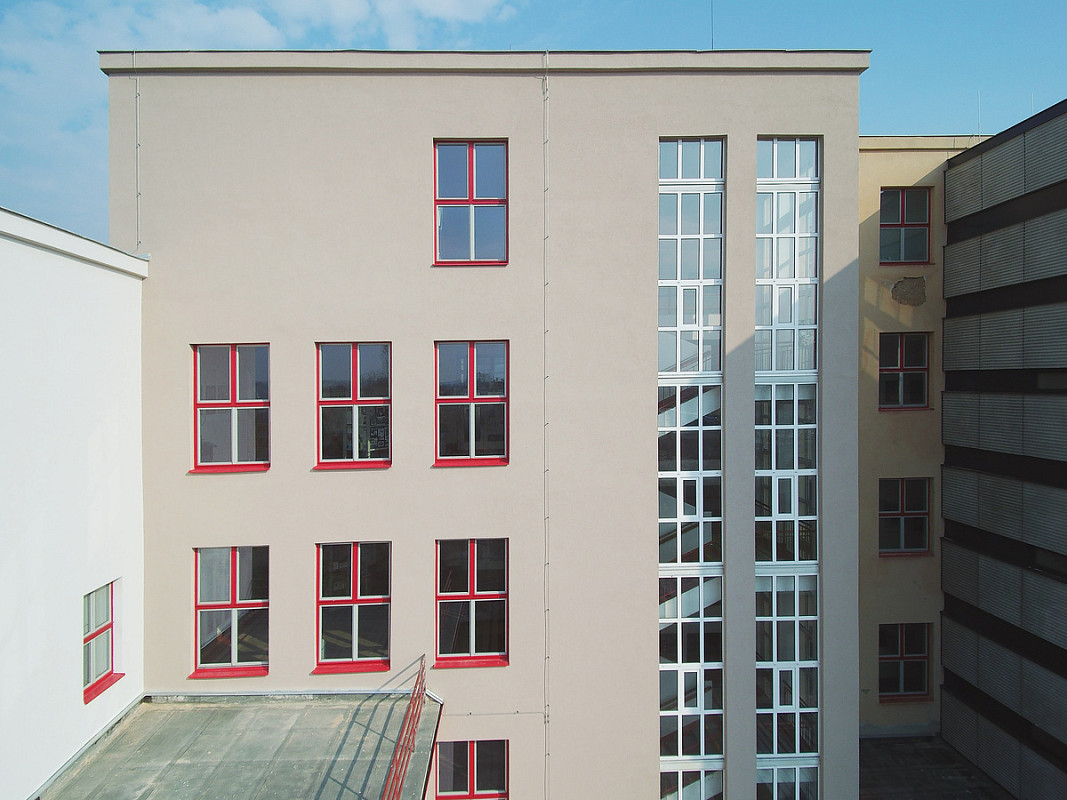 Rekonstrukce historické budovy Gymnázia Luďka Pika v Opavské ulici v Plzni. Oprava a obnova fasády památkově chráněného objektu, 3-6/2020.