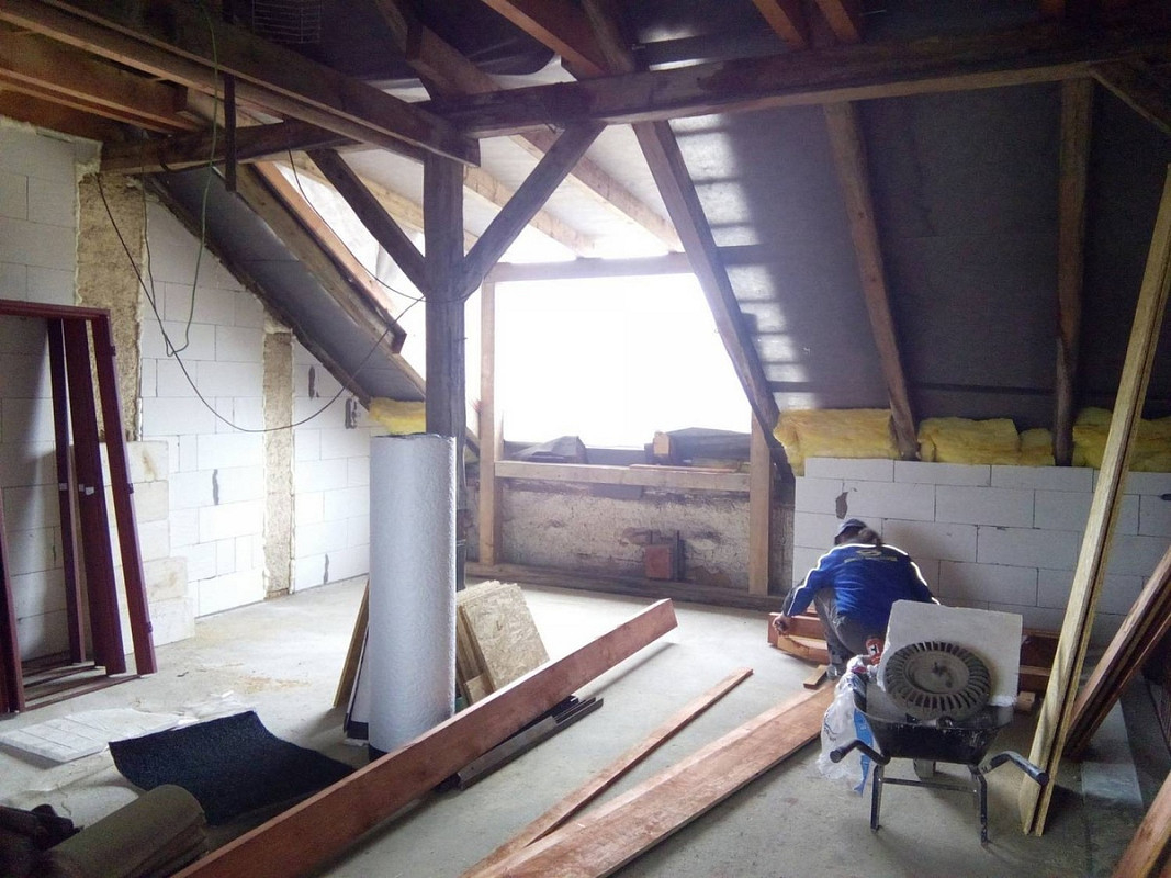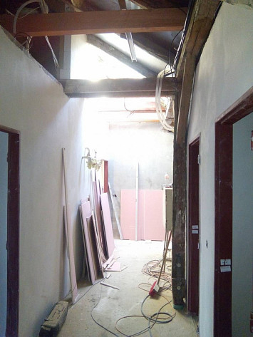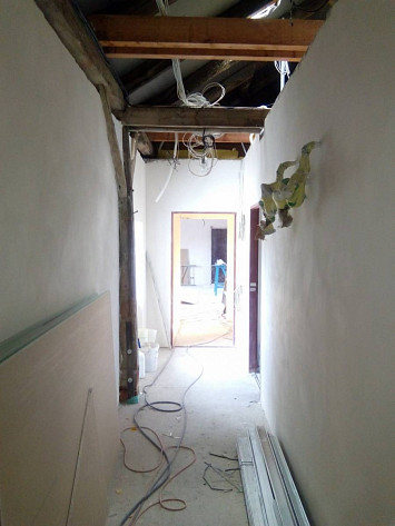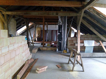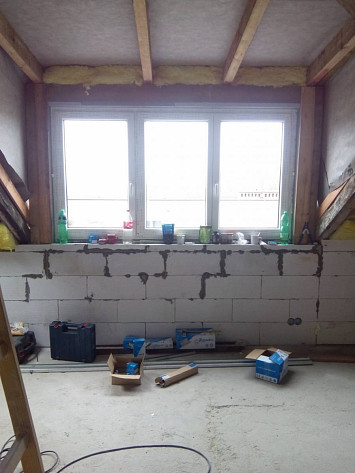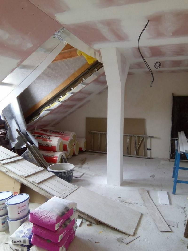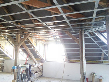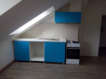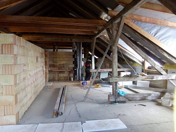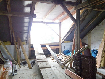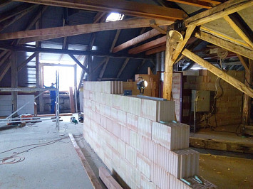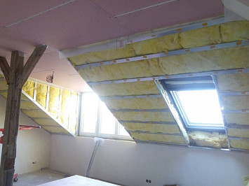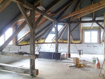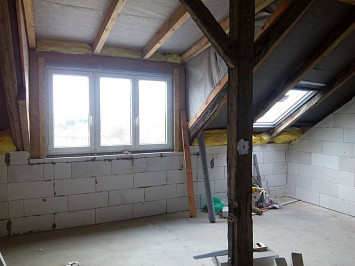 Půdní vestavba čtyř bytových jednotek na klíč v objektu Živnostenská 21, Plzeň. Kompletní realizace bytů včetně rozvodů a vybavení, 2015.